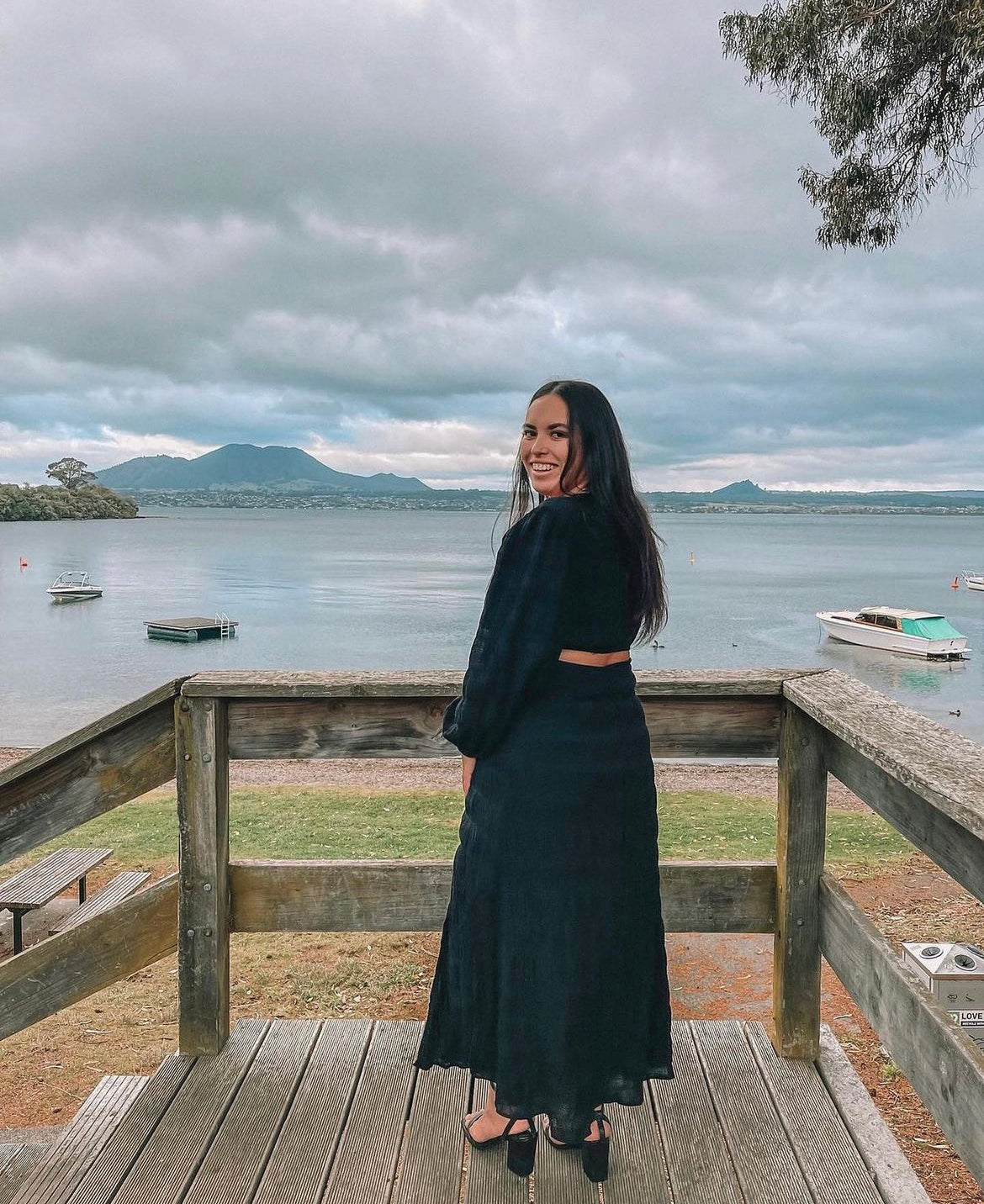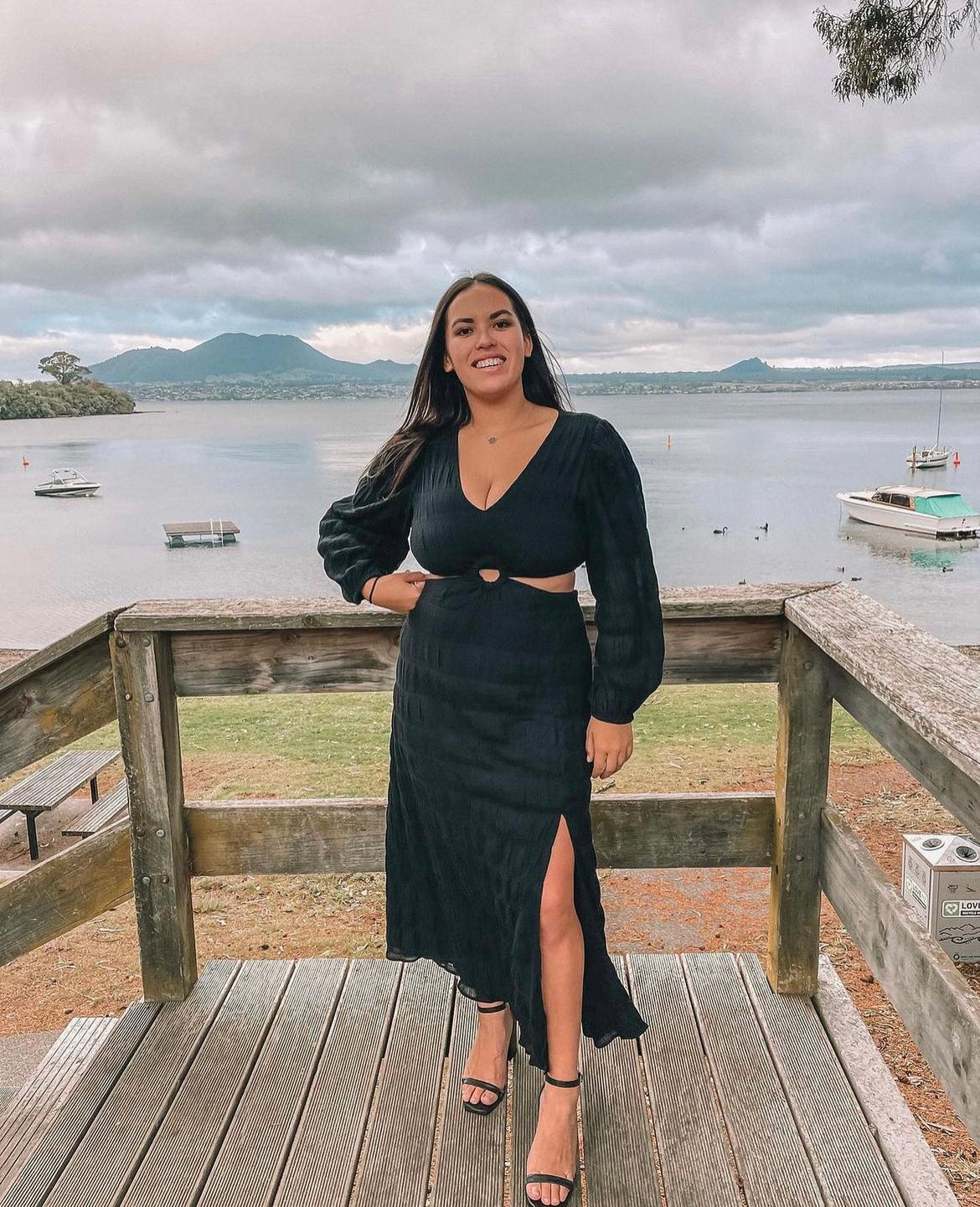 This gorgeous black shirred maxi will be perfect to wear to your next dinner date with some classics mules or to day trips to the markets with some sneakers.
