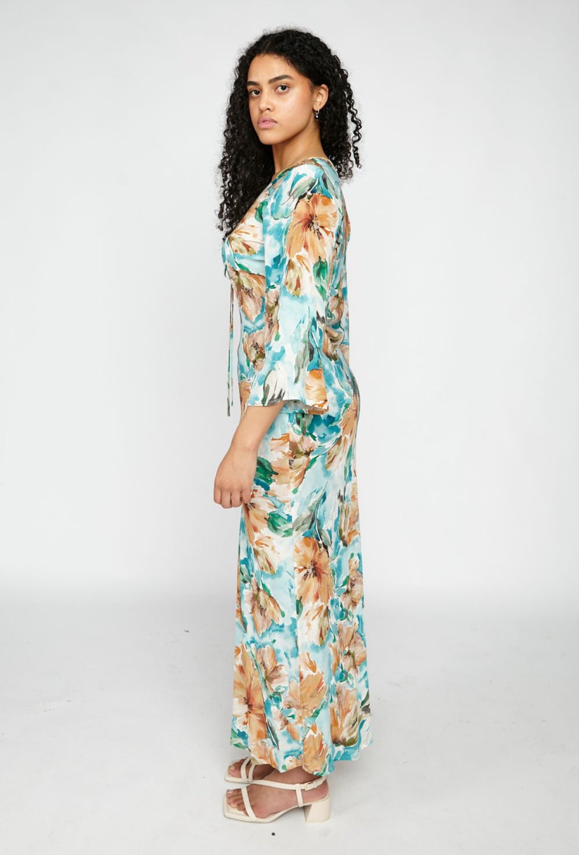 Bias cut silk midi-dress featuring a keyhole tie detail at the neckline, in a RUBY exclusive wilted floral print. The bias cut effortlessly skims your figure, and the keyhole feature adds stylistic element that enhances the classic piece. This dress is perfect for wedding guest, vineyards and long lunches!