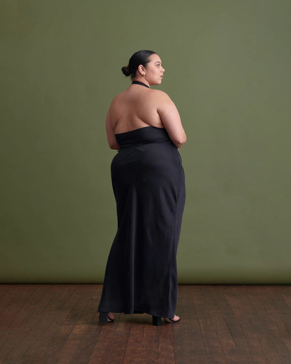 The Benten Halter Dress is a bias cut full length dress with a cowl halter neck. A beautiful formal dress perfect for any special occasions.