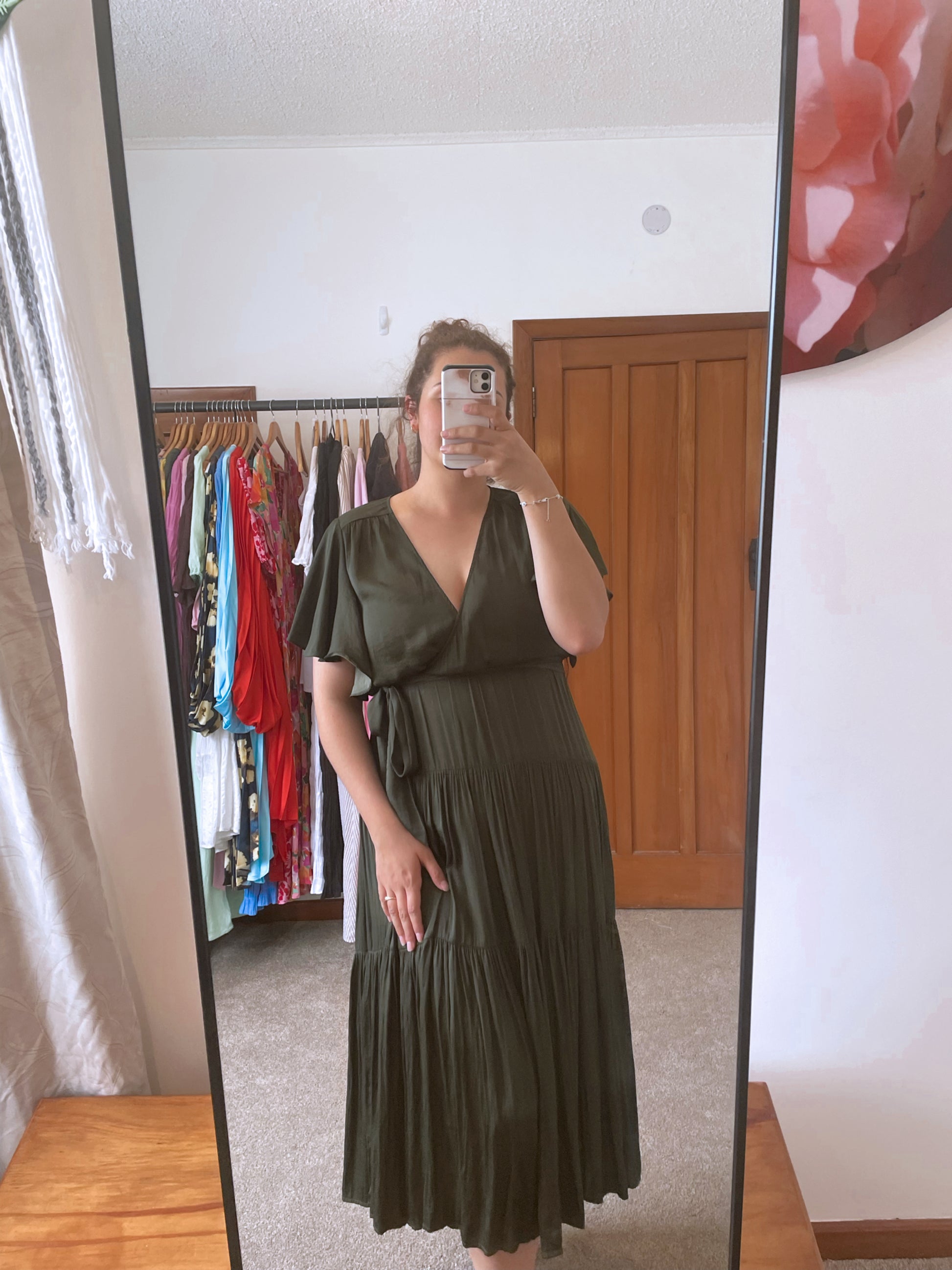 Flowy summer styling is easy in our Morocco Maxi Dress. In a Khaki colour with a waist tie and beautifully tiered dress that hangs beautifully.