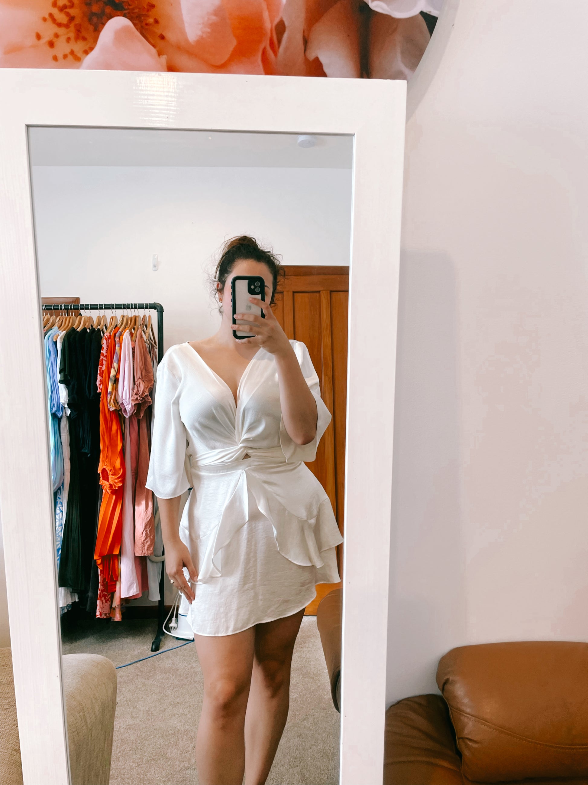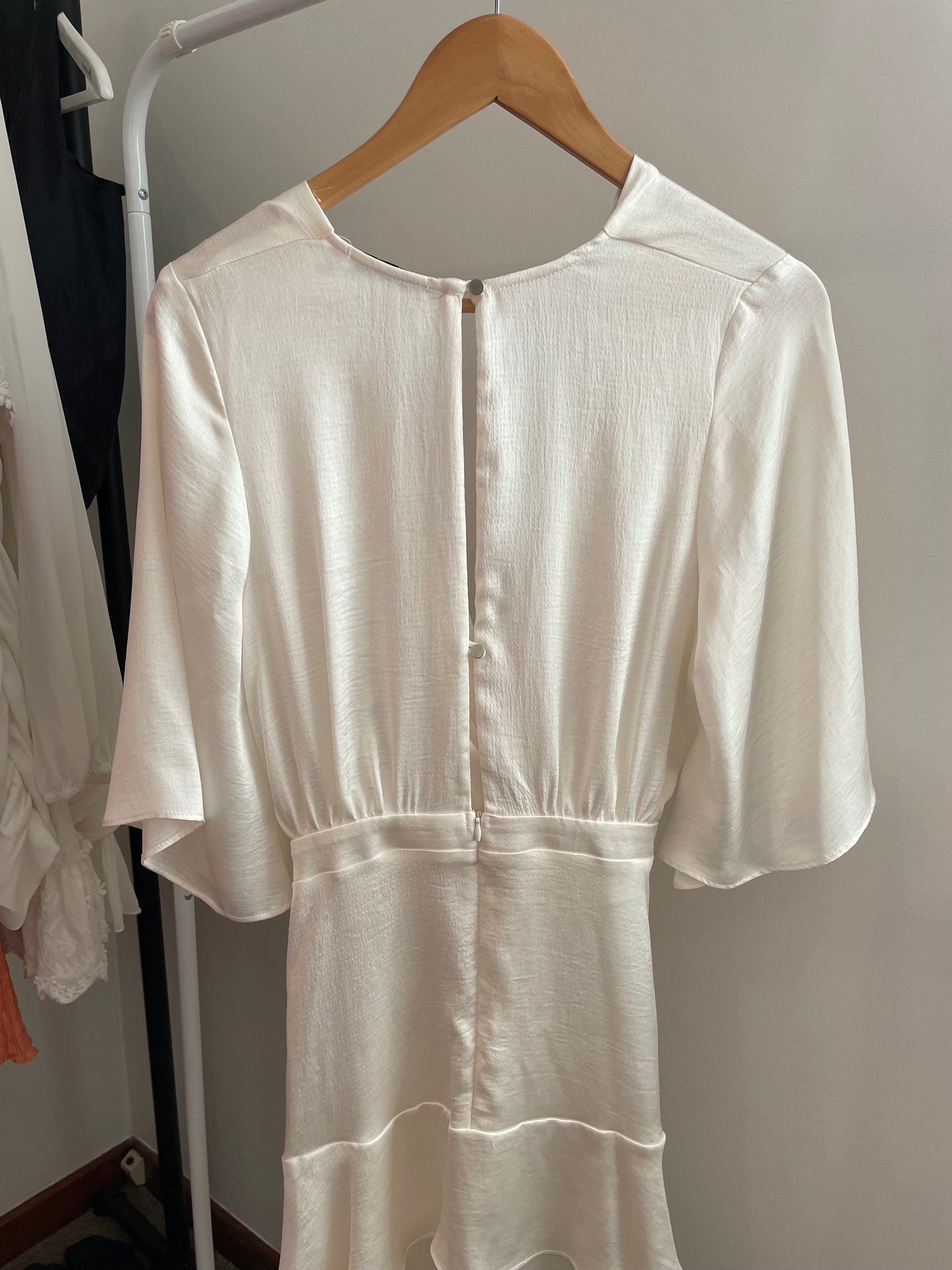 Sheike White ruffle mini with a twist at the front and a semi open back.
