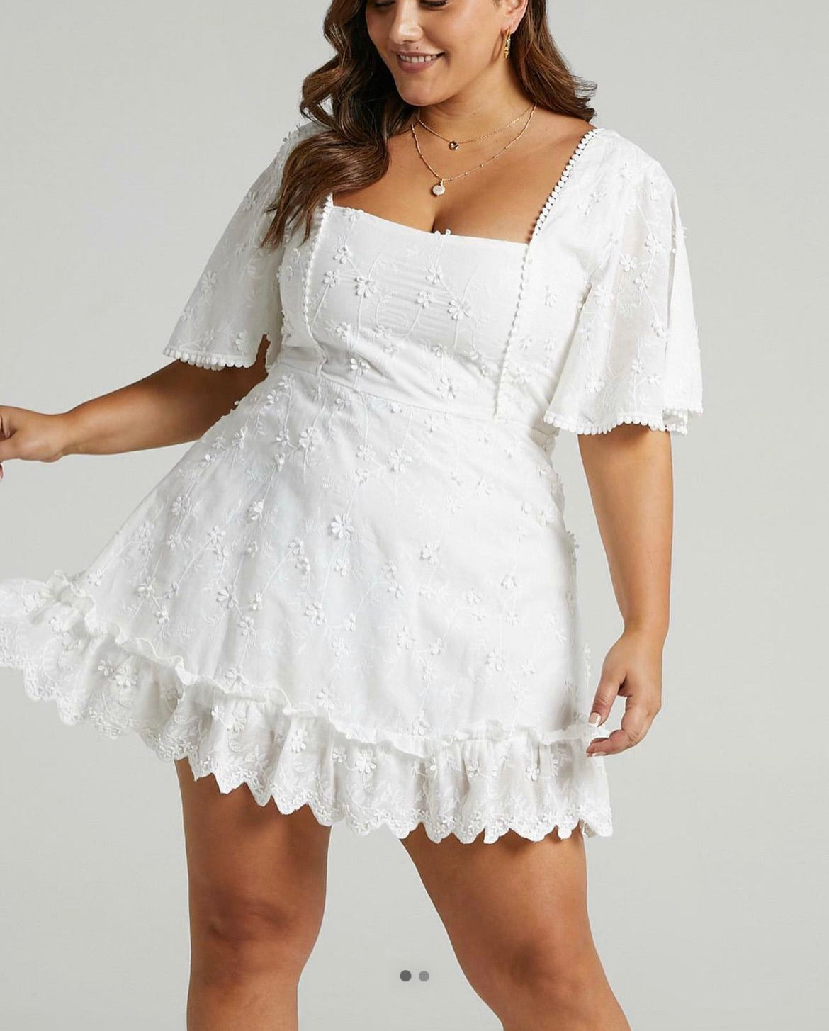Feel stunning in our Fancy A Spritz Dress! Featuring embroidery details, flared angel sleeves and a square neckline with a slight sweetheart finish, this A-line mini dress is the perfect choice for that day party or special event coming up. Is True to size.
